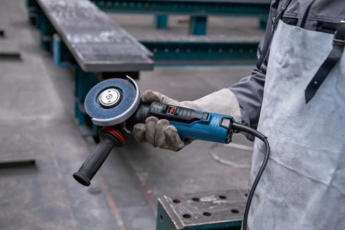 Grinding metal or welding seams and cutting metal, concrete, bricks, and tiles are the fields of application of the GWS 17-150 PS Professional. The small angle grinder features Constant Speed, Soft Start, and Overload Protection.