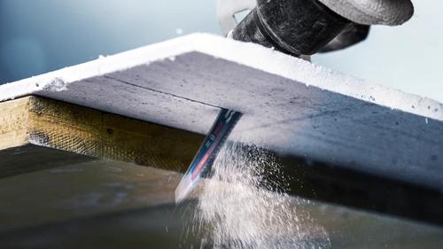 The sheer abrasiveness of cement fibre board means it is one of the toughest materials for your recip saw blade. For installers, plumbers, electricians and any tradesmen involved in maintenance and restoration, however, cutting these boards is essential. The Bosch EXPERT ‘Fiber Plaster’ Reciprocating Saw Blade is a handy specialist for any tradesman who needs to cut cement fibre board and drywall – and its outstanding endurance makes it great value.Bosch S 641 HM. Product type: Sabre saw blade, Suitable for materials: Aerated concrete, Cement fibre panel, Blade material: High carbon steel (HCS). Working length: 10 cm, Blade tooth spacing: 4.3 mm, Cutting thickness (max): 1.25 mm. Overall length: 15 cm. Quantity per pack: 1 pc(s)