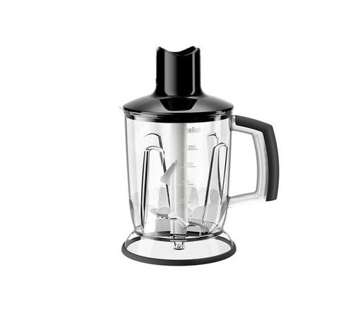 Braun’s chopper / blender attachment does the job of two – it allows you to expand your creativity, while getting the most out of your hand blender. Besides quickly and easily chopping your cooking ingredients, it is also perfect for blending smooth shakes and drinks, mixing a light batter – and even offer a simple way to crush ice.Braun MQ 40. Accessory type: Blender chopping bowl, Chopper bowl capacity: 1.25 L, Chopper blades material: Stainless steel. Doesn't contain: Bisphenol A (BPA)