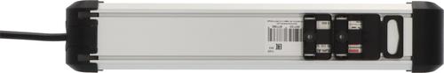The Premium-Alu-Line extension lead with 6 outlets in a slim design serves as an optimal power supply source in the home office or at the workplace. The power strip with illuminated safety switch (two-pole) and space-saving sockets in 45° arrangement can also be mounted on the wall or even on a table leg thanks to the innovative mounting concept. The power socket outlet with increased contact protection also impresses with the following features: