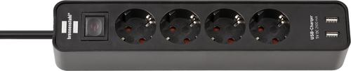 Extension Socket Ecolor with USB-Charger 4way black/black 1.5m H05VV-F3G1.5 with switchBrennenstuhl Ecolor. Cable length: 1.5 m, Placement supported: Indoor, AC outlet types: Type F. AC outlets quantity: 4 AC outlet(s). Maximum current: 2.1 A. Width: 80 mm, Depth: 340 mm, Height: 60 mm. Cable colour: Black