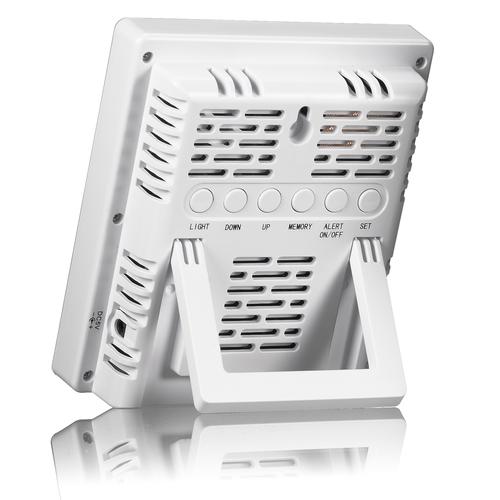 The practical carbon dioxide alarm reminds you when you need to let in some fresh air. If the default setting is different to your ideal indoor climate, you can configure you own limit up to a maximum of 5000 ppm. The alarm function can then be activated with a simply button press. If the preset limit is exceeded, the alarm will sound at a varying intensity depending on the CO2 concentration. The display will also show a flashing arrow symbol to remind you to open the windows.