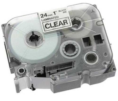 - 24mm width and 8m length.Brother Gloss Laminated Labelling Tape - 24mm, Black/Clear. Tape type: TZ, Country of origin: China. Tape length: 8 m, Width: 172 mm, Depth: 108 mm. Tape size: 2.4 cm