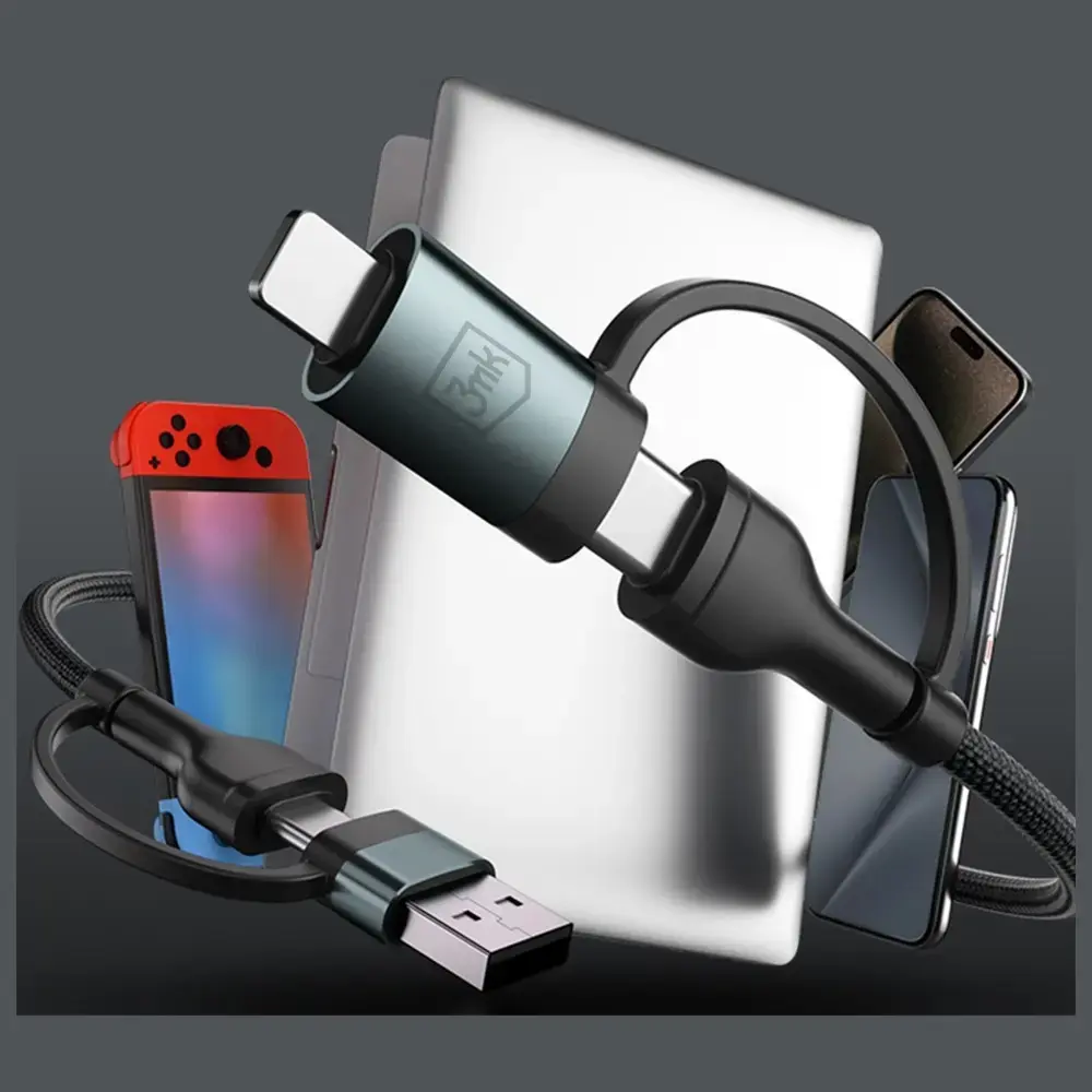 The 3MK Hyper Cable N-Series USB-A/USB-C to USB-C/Lightning 1.2 m 60 W is a modern and versatile cable designed for users who value convenience, durability, and fast charging. Thanks to its thoughtful design and interchangeable USB-C and Lightning connectors, the cable is compatible with both Android and Apple devices, making it an ideal solution for everyday use at home, work, or on the go.