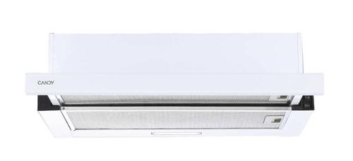 Candy CBT625/2W/1. Maximum extraction power: 332.1 m³/h, Fluid dynamic efficiency class: D, Lighting efficiency class: A. Type: Semi built-in (pull out), Product colour: White, Control type: Buttons. Grease filter type: Aluminium/Carbon. Bulb power: 2 W, Bulb type: LED, Illuminance: 89 lx. Annual energy consumption: 27 kWh, Energy efficiency scale: A+++ to D, Connected load: 1000 W