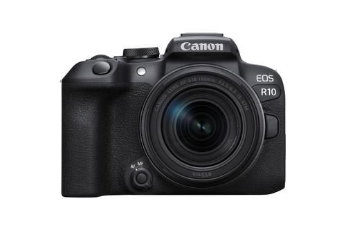 Canon EOS R10 + RF-S 18-150mm IS STM. Camera type: MILC, Megapixel (approx.): 24.2 MP, Sensor type: CMOS, Maximum image resolution: 6000 x 4000 pixels. ISO sensitivity (max): 32000. Focal length range: 18 - 150 mm. Wi-Fi. HD type: 4K Ultra HD, Maximum video resolution: 3840 x 2160 pixels. Display diagonal: 7.49 cm (2.95"), Touchscreen. Viewfinder type: Electronic. PictBridge. Weight: 382 g. Product colour: Black