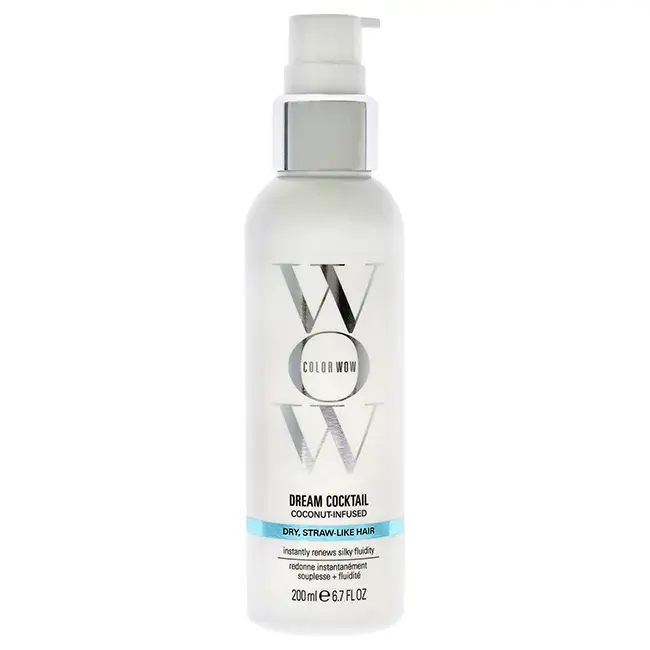 Show dry, damaged hair the door with Color Wow Dream Cocktail Coconut-Infused Leave-in Treatment. This luscious, nutrient-packed leave-in is more than just a treatmentit's a hair revolution! Infused with the tropical essence of coconut, it delivers deep hydration and strength for the silkiest, most resilient hair youve ever dreamed of. Why You'll Love It.. Hydrates & Smoothes Strengthens & Repairs Weightless Moisture Enhanced Shine Colour-Safe Formula Key Ingredients Coconut Oil - Rich in fatty acids, this natural hydrator penetrates deep to replenish moisture and add strength. Keratin - Restores and strengthens the hair shaft, enhancing elasticity and resilience. Seaweed Extract - A natural source of vitamins and minerals, it nourishes and revitalises the hair. Designed for weak or brittle hair, this leave-in treatment acts like a strength serum, fortifying each strand from the inside out. With every use, your hair becomes more resilient, less prone to breakage, and healthier looking. Ingredients: | Color Wow Dream Cocktail Coconut-Infused Leave-In Treatment 200Ml In Clear.