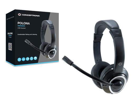 This USB Headset is a comfortable stereo headset to use at home or at the office for listening to music, playing games, chatting and video conferencing. This headset comes with a flexible microphone and a 2 meter cable.Conceptronic POLONA USB Headset. Product type: Headset. Connectivity technology: Wired. Recommended usage: Calls/Music. Headphone frequency: 42 - 17000 Hz. Cable length: 2 m. Weight: 175 g. Product colour: Black