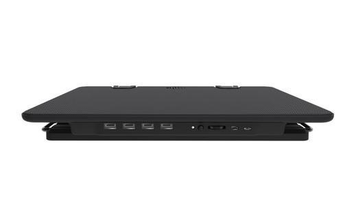 The Notepal ERGOSTAND IV is an ergonomic laptop cooling stand that will make using your laptop fun again. A 140mm silent fan with aerodynamic design keeps your laptop cool and working smoothly. 5 ergonomic height settings for comfortable viewing angles. The use of full mesh board improves its cooling performance greatly. A blue LED strip gives you the edge in the dark and 4 additional USB ports let you plug in all your devices.