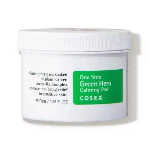 Gentle toner pads soaked in plant-driven Green-Rx Complex essence that bring relief to sensitive skin.