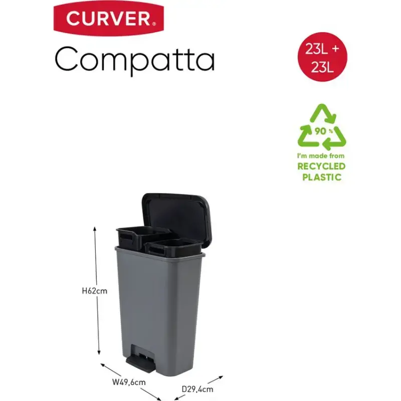 Curver Compatta Duo 23+23L tumsakasinine/must pedaalidega prügikonteiner (0817210791)