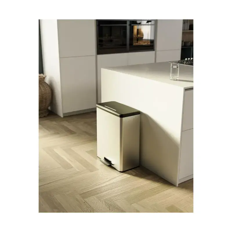 Elegant and functional waste bin with Soft-Close mechanism. Curver Deco Bin made of 70% recycled plastic. It is not only sustainable, but also durable.Size: 61.5 x 48.6 x 31.6cmCapacity: 65LMaterial: plastic