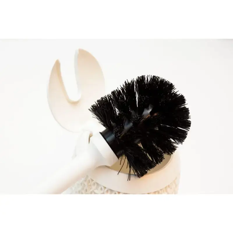 Toilet brush holder with cap. The cap closes as soon as the brush is inserted.