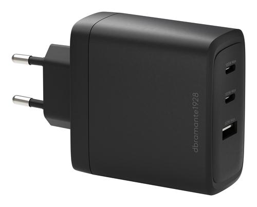 dbramante1928 re-charge IT - EU W. Charger - 2xUSB-C 100W + 1xUSB-A - BLK. Charger type: Indoor, Power source type: AC, Charger compatibility: Laptop, Smartphone, Tablet, USB Type-C ports quantity: 2, Fast charging. Product colour: Black
