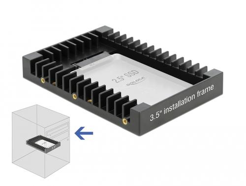 With this installation frame by Delock a 2.5″ drive, such as an SSD or HDD, can be mounted in a 3.5″ drive bay of a PC. The extensive installation options allow a secure attachment of the frame.DeLOCK 3.5″ Installation Frame for 2.5″ SATA drive black. Size (imperial): 8.89 cm (3.5"), Type: Storage drive tray, Product colour: Black. Width: 101 mm, Depth: 147 mm, Height: 20 mm. Quantity per pack: 1 pc(s)