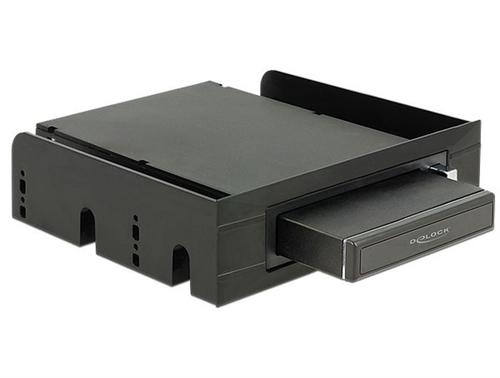 This Delock mobile rack can be installed into the 3.5″ or 5.25″ bay of the computer. It includes an enclosure for 2.5″ SATA hard disks or SSDs, which can be operated either directly in the mobile rack via SATA or externally via USB.DeLOCK 47213. Product colour: Black, Supported storage drive heights: 9.5 mm, LED indicators: Activity, Power. Width: 148 mm, Depth: 139 mm, Height: 42 mm. Cables included: SATA. Windows operating systems supported: Windows 10 Education, Windows 10 Education x64, Windows 10 Enterprise, Windows 10 Enterprise x64,...