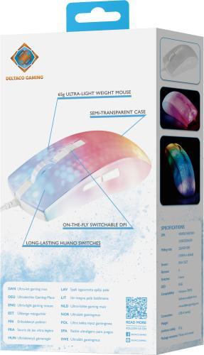 And that’s not all. The included software allows you to customize the DPI, adjust the RGB lighting to match your mood or set smooth macros to program a series of actions or commands with a single button press, and much more. Switch between up to 4 different profiles for ultimate flexibility based on your game or mood.Deltaco GAM-144-W. Form factor: Right-hand. Device interface: USB Type-A, Movement resolution: 6200 DPI, Buttons type: Pressed buttons, Buttons quantity: 6, Scroll type: Wheel. Illumination colour: Blue, Green, Red. Power source: Cable. Product colour: White