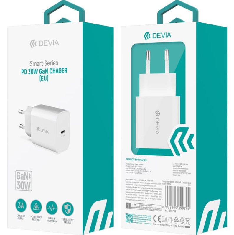 Devia Intelligent PD GaN Travel charger USB-C 30W (RCE-3005CL)