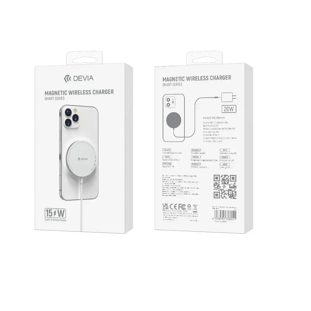 Devia juhtmata laadija, nutika magnetiga, 15W, valge (EA239)