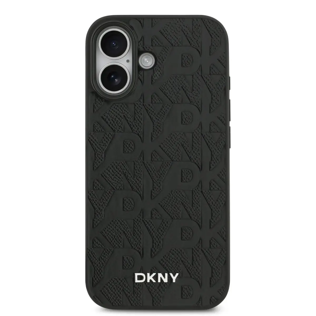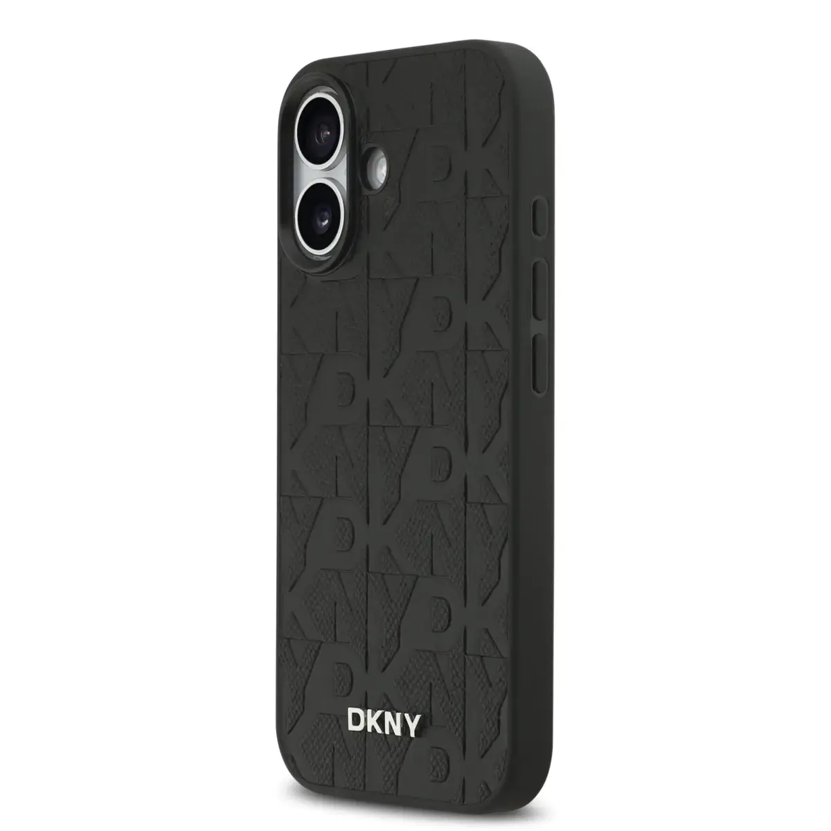 DKNY PU nahast ristmuster Magsafe ümbris koos Magsafe tugiga Apple iPhone'i 17 musta värvi jaoks (DKHMP17SPSGPHMK)