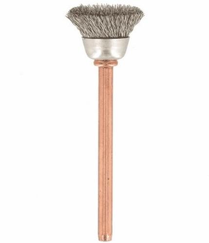 Stainless steel brushes do not cause “after rust” when used on corrosive-resistant materials like pewter, aluminum and stainless steel.Dremel 26150531JA. Type: Cup brush, Shank diameter: 3.2 mm, Diameter: 1.3 cm