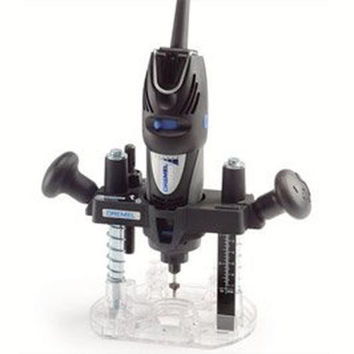 Converts your Dremel tool into a plunge router to rout circles, signs and inlay work, decorative edges and to rout parallel to an edge. Plunge-lock in handle - simply turn handle to lock/unlock. Two depth stops for quick, consistent adjustment of depth. Edge guide and circle guide to rout straight lines and perfect circles. Guide bushing set for letter and pattern template routing.Dremel Plunge Router Attachment (335)