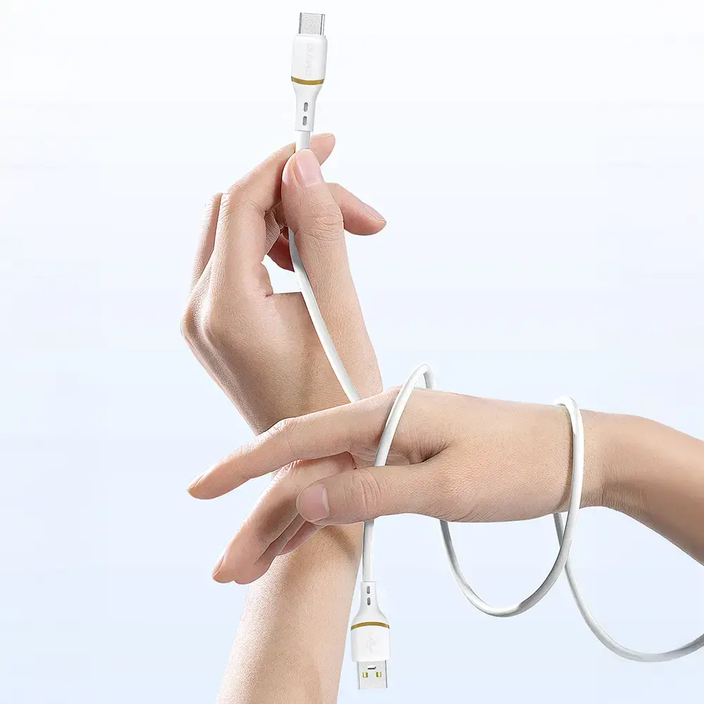 Dudao L25L USB-A - Lightning Cable 30 W 1 m with Soft Silicone Braid - White The Dudao L25L cable is a practical and durable charging and data transfer solution for Apple devices with a Lightning port. Supporting up to 30W of power, it provides efficient and stable charging during everyday use. The soft Liquid Silicone braiding ensures high flexibility, bending resistance, and comfort of use. The cable fits snugly on a desk and is tangle-free during storage. It's a reliable choice for home, office, and travel. ~ Specification: Brand: Dudao Model: Dudao L25L Connector type: USB-A - Lightning Exit: Lightning up to 30W Length: 1 m Material: silicone (Liquid Silicone) Functions: charging, data transfer Color: white ~ The most important advantages of the Dudao L25L cable: Up to 30W charging: Stable power for Apple devices with Lightning port. Soft silicone braid: flexible and pleasant to the touch Liquid Silicone material. Bend resistance: the cable retains its shape even under heavy use. Data transfer: simultaneous charging and synchronization possible. Practical length of 1 m: comfortable use in various conditions. ~ 30W stable charging The cable ensures efficient energy replenishment during everyday use. Liquid Silicone braid The soft material increases comfort of use and resistance to damage. Flexible design The cable does not tangle and quickly returns to its original shape. Charging and data Simultaneous data transfer and power supply without the need to change cables. For everyday use Suitable for home, office and travel.