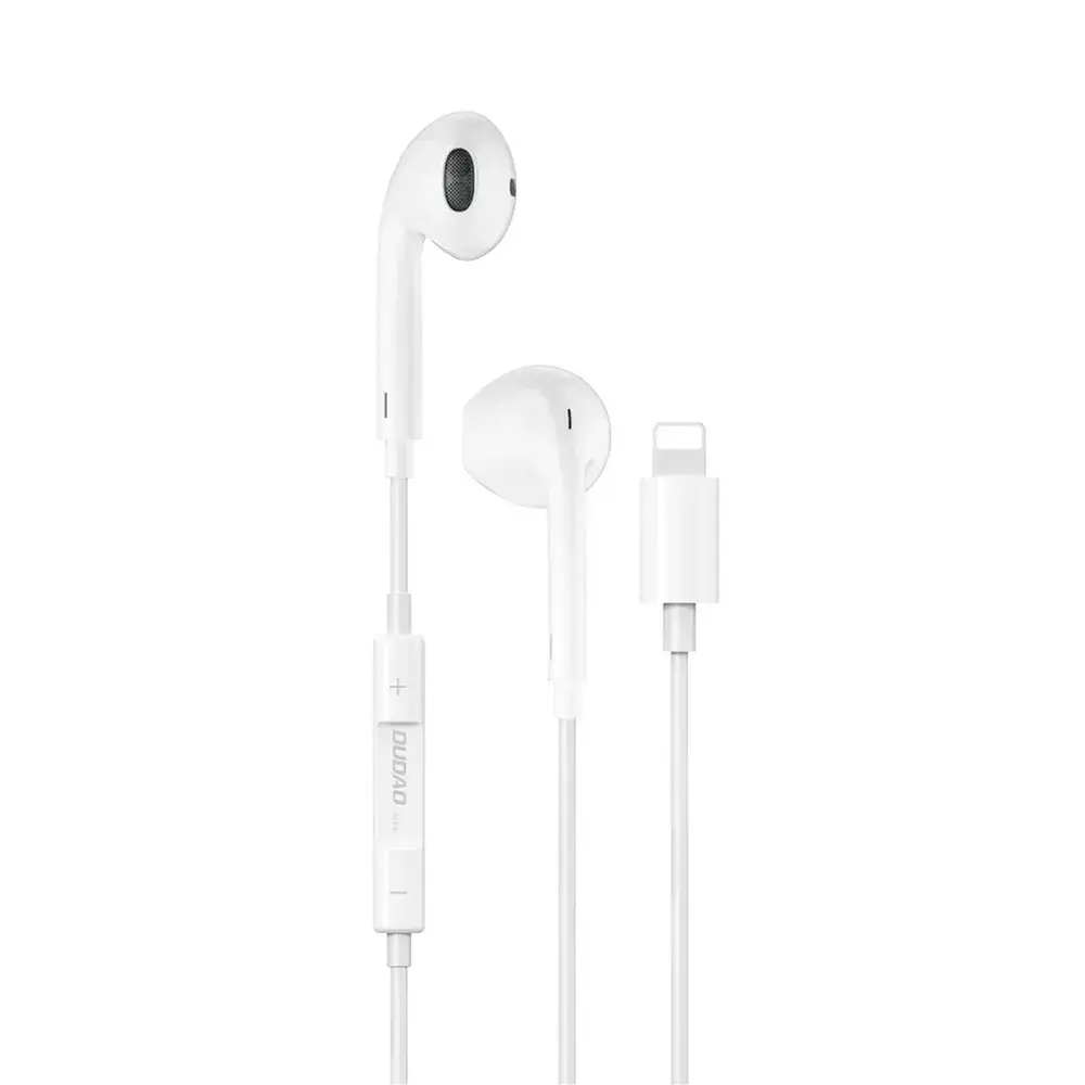 Dudao X14+ Wired In-Ear Headphones with Lightning Connector 1.2m - White The Dudao X14+ in-ear headphones are designed for Apple device users who expect clear sound and comfortable everyday use. Large dynamic drivers deliver crisp sound with powerful bass and clear highs. The in-ear design helps reduce ambient noise, promoting focus when listening to music or talking. The integrated microphone and remote allow for convenient call and multimedia control. This is a practical solution for work, entertainment, and everyday use. ~ Specification: Brand: Dudao Model: Dudao X14+ Headphone type: in-ear, wired Connector: Lightning Cable length: 1.2 m Transducer diameter: 14 mm Cable material: high-durability plastic Color: white ~ The most important advantages of Dudao X14+ headphones: Hi-Fi stereo sound: large drivers deliver deep bass and clear highs. In-ear noise reduction: The design reduces ambient noise for better listening comfort. Microphone and remote control on the cable: convenient calling and music control. Solid build quality: durable, tangle-resistant cable. Lightning connector: direct compatibility with Apple devices. ~ Large 14mm drivers They provide dynamic sound suitable for music, calls and multimedia. In-ear design A better fit in the ear helps reduce ambient noise. Built-in microphone It allows you to make calls without having to reach for the phone. Multifunction remote control Easily control volume, music and calls in one place. Apple compatibility Designed for devices with a Lightning port.