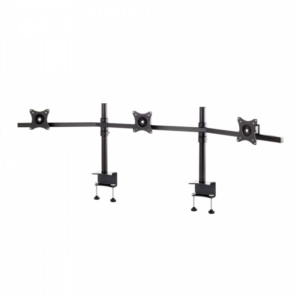 | Kirjeldus | Kõver lauakinnitus kolmele 19"-27" monitorile Kõver lauakinnitus SV11 kolmele 19"-27" monitorile on mõeldud kasutajatele, kes teevad tööd kogu päeva monitoriga. Reguleeritav poc |