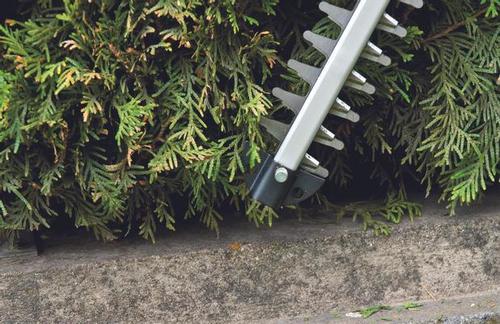 The GE-CH 1855/1 Li Kit cordless hedge trimmer is a very efficient tool which provides good service for the trimming of hedges, shrubs and bushes on large grounds where there is no connection to the electric power grid. With the new Power X-Change battery system from Einhell, the hedge trimmer has an 18 V battery pack with 2.5 Ah for long work sessions. For a long service life the gearing is made of metal, for clean cutting results the blades are made of laser-cut and diamond-ground steel. The GE-CH 1855/1 Li Kit has a battery charge level indicator with three LEDs where you can check the current charge level at a glance. In addition, the battery packs can be used for all products from the Power X-Change family. Complete with an additional high-speed charger. The integrated two-hand safety switch brings the cutters to a standstill in less than 1 second when a switch is released. The cutters are protected by an aluminium cover. The front handle is adjustable, while the rear handle can be swiveled for very good handling and optimum adjustment of the hedge trimmer to every working situation. The GE-CH 1855/1 Li Kit comes with a sturdy cutter guard for safe and user-friendly transportation or storage.Einhell GE-CH 1855/1 Li Kit (1x2,5 Ah). Power source: Battery, Battery voltage: 18 V, Battery capacity: 2.5 Ah. Weight: 2.6 kg