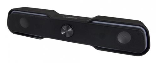 High-quality stereo speaker with LED RAINBOW lighting for notebooks and desktops. It provide clear and natural sound quality. They work well with all computer units with speaker and USB outputs. It is equipped with built-in volume control. High-quality materials used for their manufacture protect against static electricity and electromagnetic interference.Esperanza Apala. RMS rated power: 6 W. Soundbar speaker RMS power: 6 W, Impedance: 3 Ω. Product colour: Black, Recommended usage: Laptop / Netbook, Volume control: Rotary. Connectivity technology: Wired. Width: 440 mm, Depth: 83 mm, Height: 88 mm