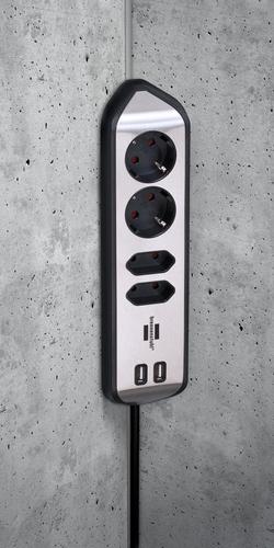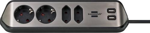 Brennenstuhl eck-Steckdosenleiste 4-kohaline (must/roostevaba teras, 2 meetrit, 2x USB) (1153590410)
