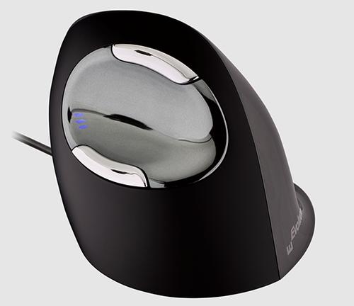 World’s First Mouse with Grooved ButtonsYour fingertips rest in a shallow groove on the buttons. This patented innovation secures the mouse in your hands and makes moving it much more precise.Avoids Forearm Twisting For ComfortThe ergonomic shape supports your hand in a handshake position. Since 2002, users continue to report that Evoluent VerticalMouse provides superior comfort and even relieves their wrist pain. Extended LipPrevents RubbingAn extra wide lip along the bottom edge prevents the last finger from rubbing the desk.Easy-To-ReachThumb ButtonsSmartly-placed thumb buttons are both within easy reach at the top and bottom of a contoured thumb rest.Adjustable Pointer SpeedA button behind the wheel enables quickly changing the pointer speed to suit different tasks: select higher speed (higher DPI) to make the pointer move faster for general use; select lower speed (lower DPI) to make the pointer move slower and more precisely for drawing, photo editing, etc.Pointer Speed IndicatorsUp to four lights show pointer speeds from slow to fast: slow speed or low DPI for precision work such as photo editing or drawing; fast speed or high DPI for quickly moving across the screen for general tasks.Laser SensorA laser sensor ensures reliable tracking on most surfaces.Copy/Paste andMuch More*Configure the buttons to perform nearly any function you wish — such as Copy or Paste — with fewer clicks and mouse movements.Excel Horizontal Scroll*Scroll horizontally in Microsoft® Excel® by pressing a thumb button and rolling the wheel.Smart Scrolling*Dramatically varies sensitivity per notch in response to the speed you roll the wheel, from slow-and-precise all the way to hyper speed for blazing through long pages.Eye Comfort Control*Quickly lower your screen’s brightness to help reduce eye strain by simply rolling the mouse wheel. Easily change the brightness of the screen as your ambient light level changes.Three SizesVerticalMouse D models are available in three sizes: Small, Medium and Large.Evoluent VMDS. Form factor: Right-hand. Movement detection technology: Laser, Device interface: USB Type-A, Buttons type: Pressed buttons, Scroll type: Wheel. Power source: Cable. Product colour: Black, Silver