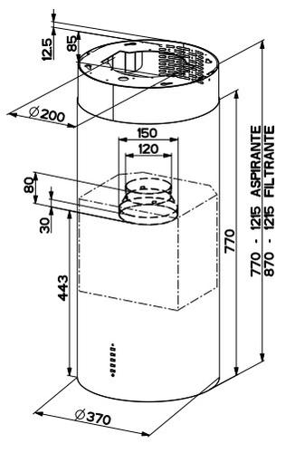 Simple and refined design for a hood with a high technological content where traditional cylindrical shape becomes protagonist of the trendy kitchens being at the same time suitable for every style.FABER S.p.A. Cylind I.Evo Plus WH Gloss A37. Maximum extraction power: 680 m³/h, Fluid dynamic efficiency class: A, Lighting efficiency class: A. Type: Island, Product colour: White, Exhaust location: Top. Grease filter type: Aluminium. Number of bulbs: 6 bulb(s), Bulb type: LED, Illuminance: 800 lx. Annual energy consumption: 58 kWh, Energy efficiency scale: A+++ to D, Connected load: 270 W