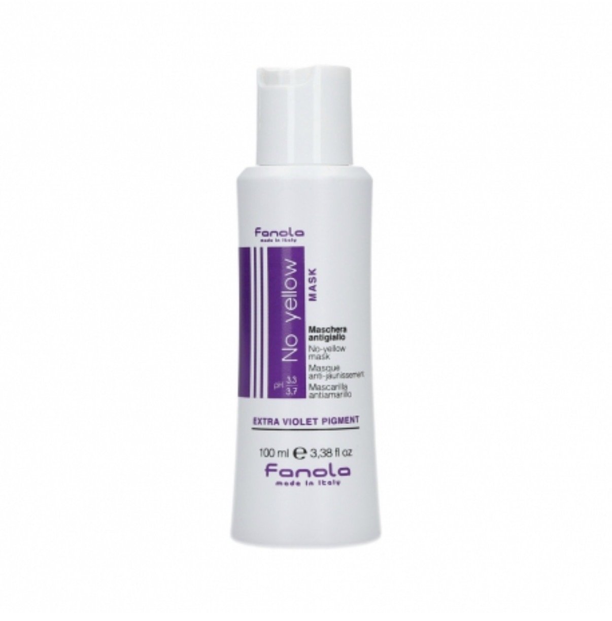 Fanola No Yellow Neutraliseeriv Juuksimask, 100 ml on professionaalne juuksimask, mis sisaldab violetseid pigmente ja neutraliseerib tõhusalt blonde, pleegitatud, halli või esiletõstetud juuste soovimatuid kollaseid toone, aidates saavutada jaheda ja ühtlasema tooni ning jättes juuksed pehmeks, siledaks ja läikivaks; sisaldab viinamarjaekstrakti ja siidproteiine, mis toidavad ja tugevdavad juukseid, kaitstes neid kuivuse eest ja rõhutades nende tervet ja hoolitsetud välimust