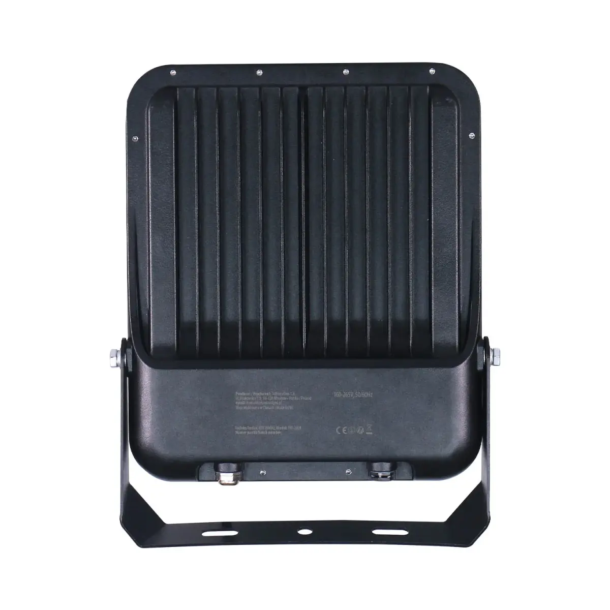 The PROXIM+ LED floodlight is an energy-efficient and effective solution with an energy class of C and an efficiency of 150 lm/W. With an IP65 and IK07 rating, it is resistant to dust, water, and mechanical damage, making it ideal for outdoor use. The product offers a 5-year warranty, highlighting its reliability. The adjustable bracket allows for easy installation, and the prefabricated lenses ensure even lighting. The power supply with surge protection and the pressure regulating valve prevent condensation, extending the device's lifespan. Available in power versions from 30W to 300W, with a motion sensor option in models up to 50W, it allows for the selection of light color. The aluminum construction and efficient heat sink effectively dissipate heat. The extended connection cable facilitates installation, and the eco-friendly design makes it environmentally friendly.