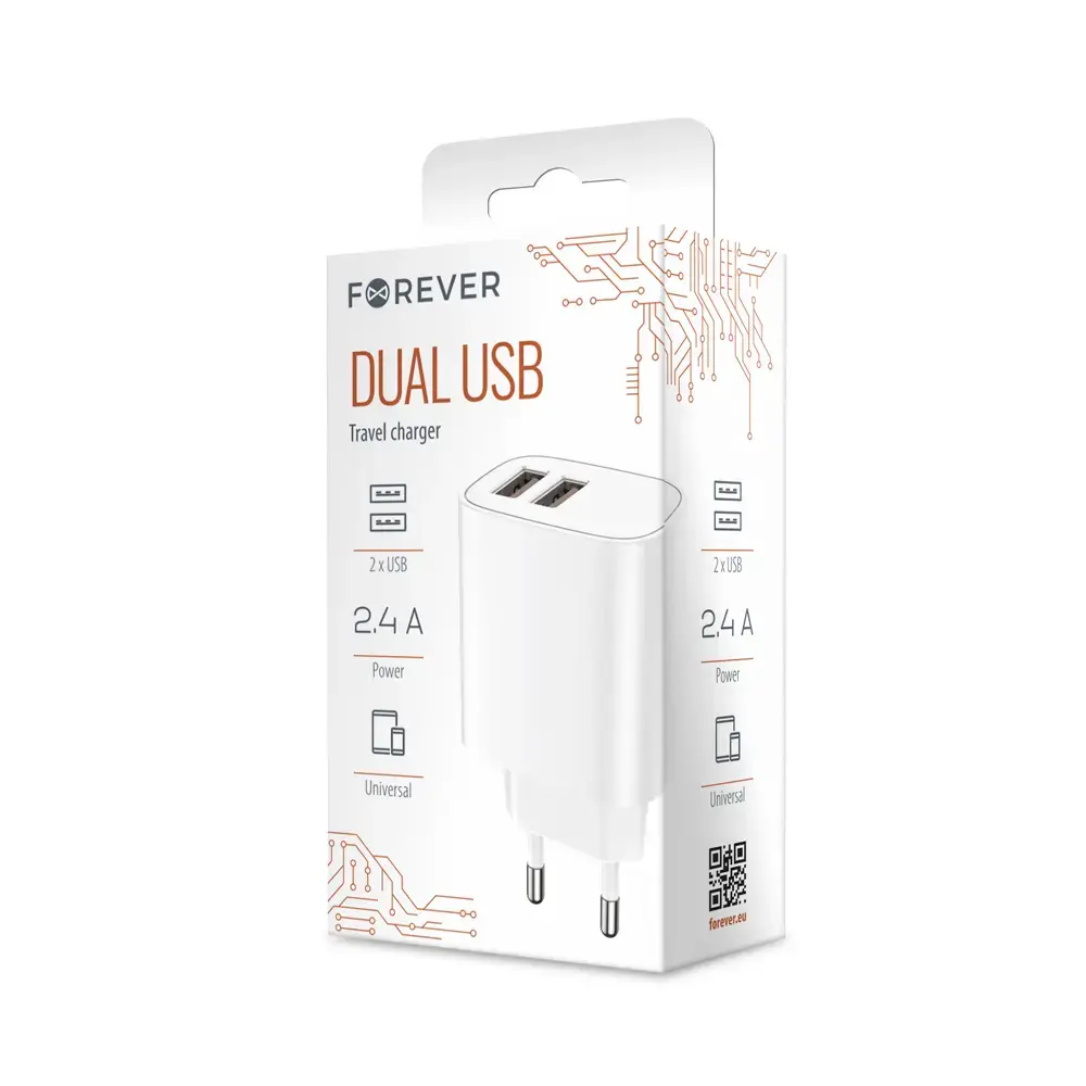 Forever seinama laadija 2xUSB 2,4A LS-03 valge (GSM113212)