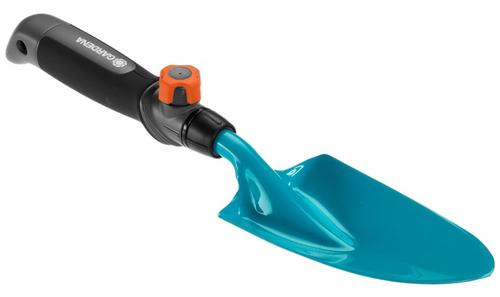 With the GARDENA combisystem Hand Trowel, you can easily plant and repot plants in flower boxes, pots or flower beds. The GARDENA combisystem allows for flexible use, thanks to the exchangeable attachments. The Hand Trowel is compatible with all handles of the GARDENA combisystem and can be mounted and secured with the handle. For a convenient work without bending over, you can detach the grip and replace it with the required handle. For the use of combisystem hand tools, GARDENA recommends the combisystem Extension Handle for Hand Tools (Art. No. 8900-20). The secure connection between trowel and handle ensures that you can always work comfortably. The ergonomically formed grip with integrated soft component fits comfortably in your hand and is angled at its end, to ensure that you do not lose grip. The width of the trowel is 8.5 cm. It is made from high-quality steel. The Duroplast coating provides longevity. Use the combisystem Tool Rack Flex (Art. No. 3505-20) for space-saving storage of the Hand Trowel. The combisystem Hand Trowel is supported with 25 years of warranty by GARDENA. Let your tool family grow. GARDENA combisystem. Interchangeable. Durable. For any gardening task.Gardena Combisystem Hand Trowel. Product type: Garden trowel, Product colour: Black, Turquoise, Blade shape: Round point. Blade width: 8.5 cm