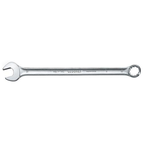 Similar to DIN 3113 . Ring 15° offset from shaft, with UD profile. Shaft made in girder pattern. Gedore vanadium steel 31CrV3, chrome-plated.Gedore 6100890. Depth: 85 mm, Height: 40 mm, Weight: 147 g