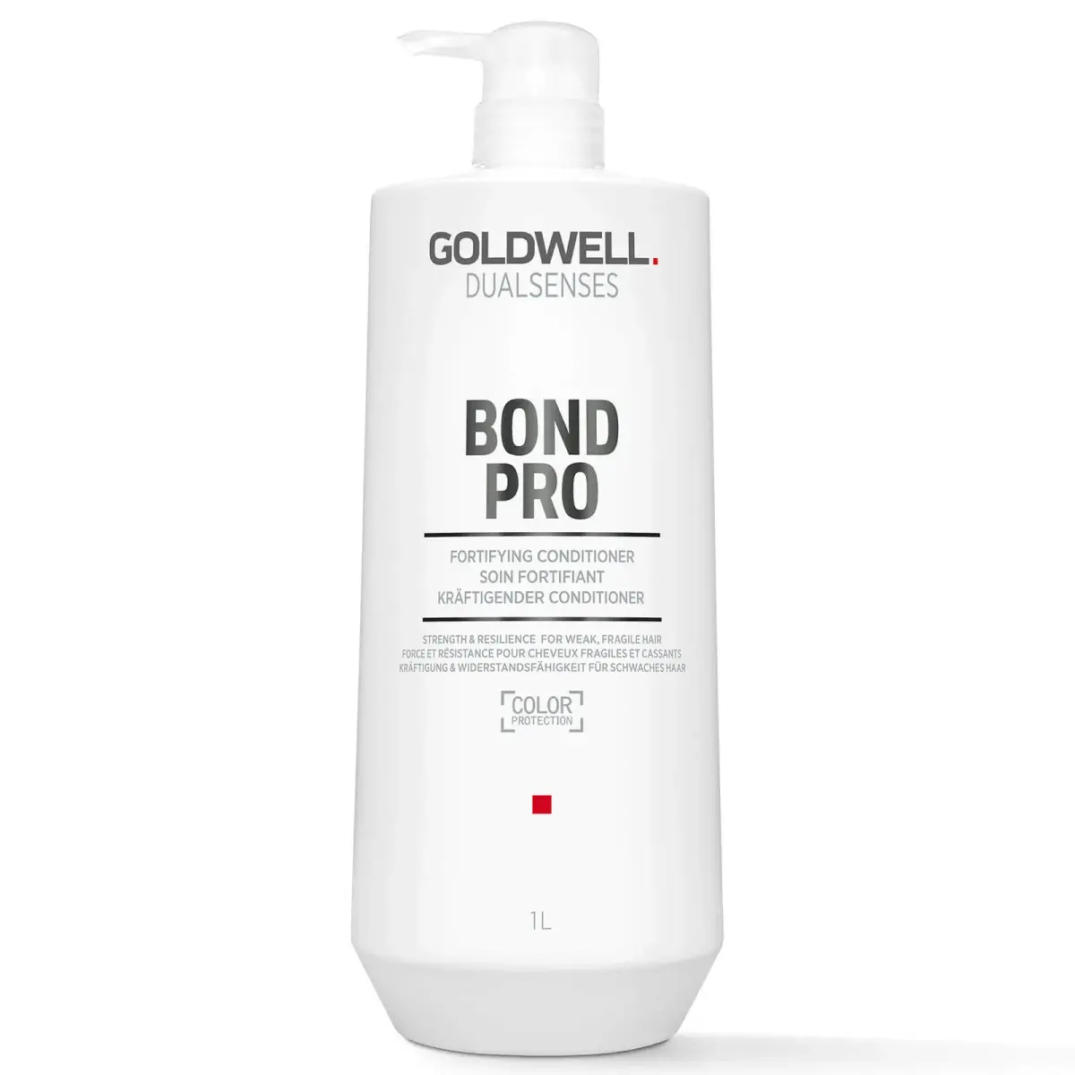 Enriched with reinforcing soy protein, stock up and save on this 1000ml advanced Bond Pro Fortifying Conditioner instantly boosts hair strength and reduces breakage. With Goldwell's proprietary microPROtec complex and Inter-Amino-Bond-Builder, this professional conditioner protects your tresses against further mechanical damage when combing or brushing. Perfect for those with fragile, weak hair. | Goldwell Dualsenses Bond Pro Conditioner 1000Ml In Clear.