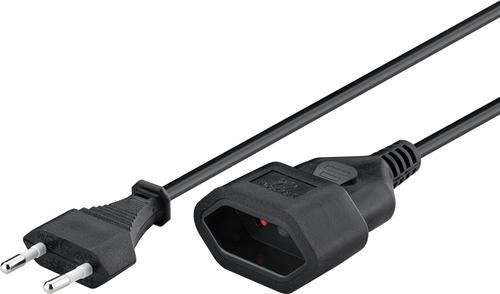 Europlug (type C, CEE 7/16) > European socketGoobay Extension Lead Europlug, 3 m, Black. Cable length: 3 m, Connector 1: Power plug type C, Connector 2: Power plug type C, Cable type: H03VVH2-F. Input voltage: 250 V