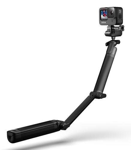 GoPro 3-way Mount 2.0 Get more capture options with a lot less gear. 3-Way 2.0 is three essential tools in one ultra versatile mount. It’s built around an ergonomic camera grip that transforms into a height-adjustable tripod. It also unfolds into an extension arm to capture selfies without the mount appearing in your footage or follow shots with extra reach. A built-in ball joint lets you tilt your camera or swivel it 360° for even more capture flexibility.