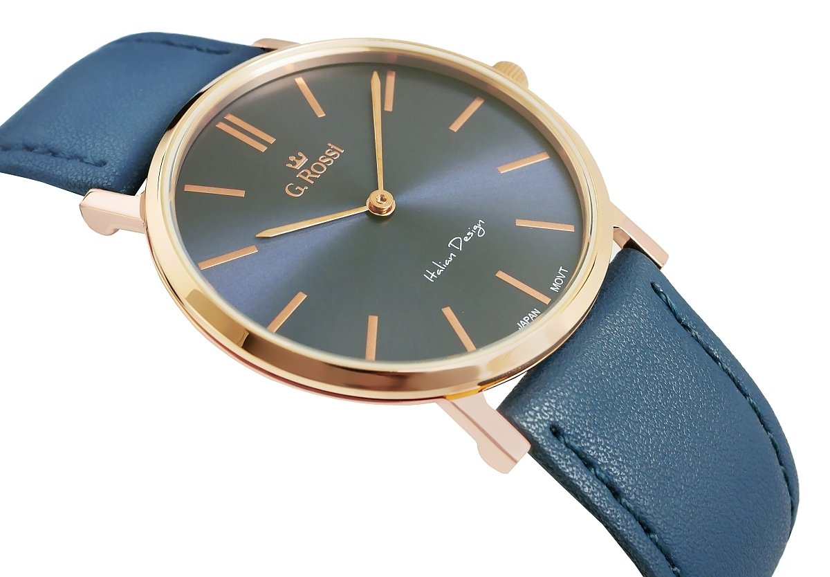 Product description: • Brand: G. Rossi • High Quality: High quality workmanship. • MECHANISM: : quartz • Dial: Analog. • CRYSTAL: Mineral with enhanced resistance to scratching and accidental impacts. • Strap: Genuine leather • WATER RESISTANCE: 3 bar • Backlight: None • Hypoallergenic: Yes - nickel-free - excellent for allergy sufferers • authenticity: on caseback Watch has engraved and from manufacturer, confirming authenticity.