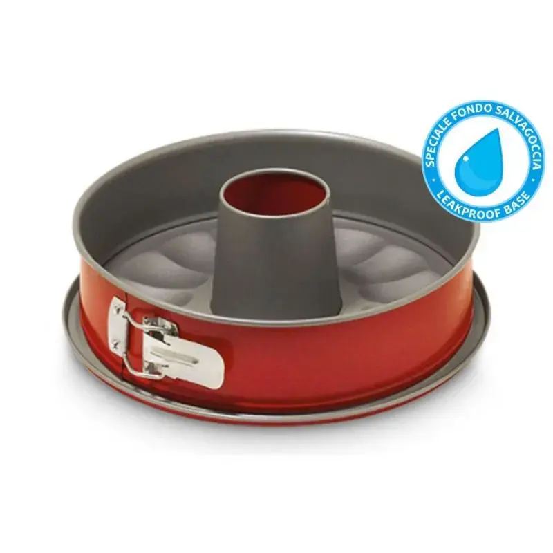 Rossana baking tray with a reversible base, ideal for baking biscuits/cakes or cakes. The excellent thermal conductivity of the steel ensures fast and even cooking of sweet and savoury dishes. The side can be opened for easy removal of the baked cake. The mould has a double non-stick coating and is made of high quality steel. BPA, PFOA and heavy metal free.