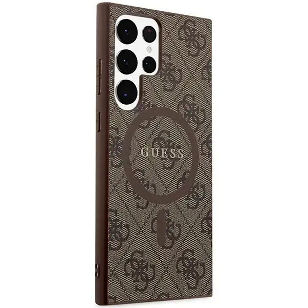 Guess 4G Collection Leather Metal Logo MagSafe A unique protective case with an exclusive design is the perfect choice for enthusiasts of modern accessories. The Guess brand has been associated with excellent design and the highest quality for years, which is perfectly presented in the 4G Collection Leather Metal Logo MagSafe protective cases. This elegant series of cases is an essential accessory for everyone who puts emphasis on style, finesse and uniqueness and wants to incorporate the refined aesthetics of the Guess brand into the protection of their smartphone. Look stylish and show your excellent taste. Solid construction and excellent workmanship This elegant case not only emphasizes the perfect appearance and unique design of the phone, but above all guarantees the safety of the device against accidental damage and shocks. Thanks to carefully matched dimensions, the case effectively absorbs possible falls, while maintaining full access to ports and buttons, regardless of the circumstances. The innovative design of the case is based on durable polyurethane, which ensures resistance to everyday wear and tear. Thanks to the almost perfect fit and maintaining the dimensions of the device, the case effectively absorbs possible falls, while maintaining full access to ports and buttons, regardless of the circumstances. The sides of the case are flexible enough to allow for trouble-free assembly and disassembly of the cover, but above all, they perfectly protect the device frame against impacts and potential damage. Slightly raised outer edges protect the phone screen from damage, while raised outer edges around the camera lens protect the optics from breaking or scratching. The stylish protective case is designed to protect your device and give it a fashionable look. Fashionable motif This elegant collection will delight even the most demanding and refined tastes. Each cover is decorated with delicate ecological leather, which is additionally decorated with a high-quality 4G print - it gives it a refined character and chic. This motif is a classic design proposition of the Guess brand, it can be found in many projects of this fashion house. The material is of the highest quality and is highly resistant to damage and scratches, so it will maintain its impeccable appearance for a long time. The large Guess brand logo placed centrally in the middle of the back of the cover emphasizes the elitism of the collection, is a beautiful decoration and at the same time confirms the excellent quality and authenticity of the cover. Charge your phone wirelessly! The cases are equipped with a magnetic ring compatible with the MagSafe wireless charger, ensuring quick and easy charging. The magnets built into the cases fit perfectly to the user's phone and ensure that the iPhone sticks firmly to the MagSafe charger. The magnetic ring perfectly matches the color of the cover and forms an integral whole with it. Product manufactured under license from the Guess brand. Technical data Collection 4G Collection Leather Metal Logo MagSafe Type Hardcase Material TPU/PC/Eco-leather Color Brown Compatibility Samsung Galaxy S24 Ultra S928