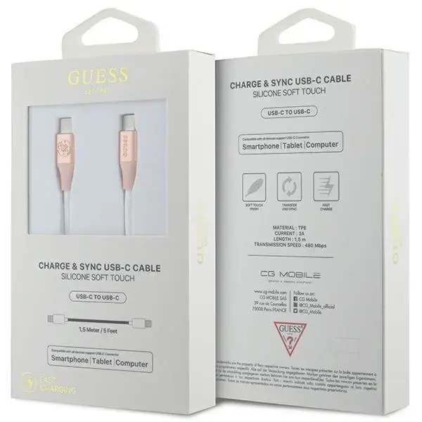 Introducing the Guess data transfer and charging cable, designed for seamless compatibility with your phone and tablet devices. This USB-C to USB-C cable ensures fast charging and efficient data transfer, making it an essential accessory for your tech needs. Whether you're at home, in the office, or on the go, this cable provides reliable performance to keep your devices powered up and synced. The stylish pink color and high-quality materials not only enhance its durability but also add a touch of elegance to your everyday tech accessories.