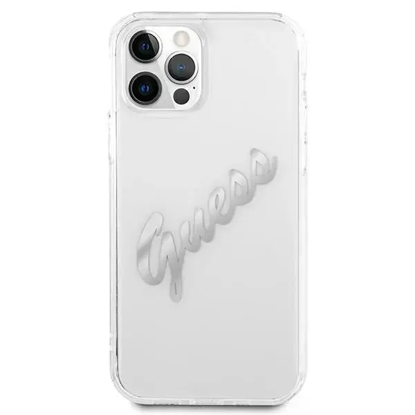 GUESS GUHCP12LKTRSVSI iPhone 12 Pro Max 6,7" läbipaistev kõvaümbris Vintage Script Silver