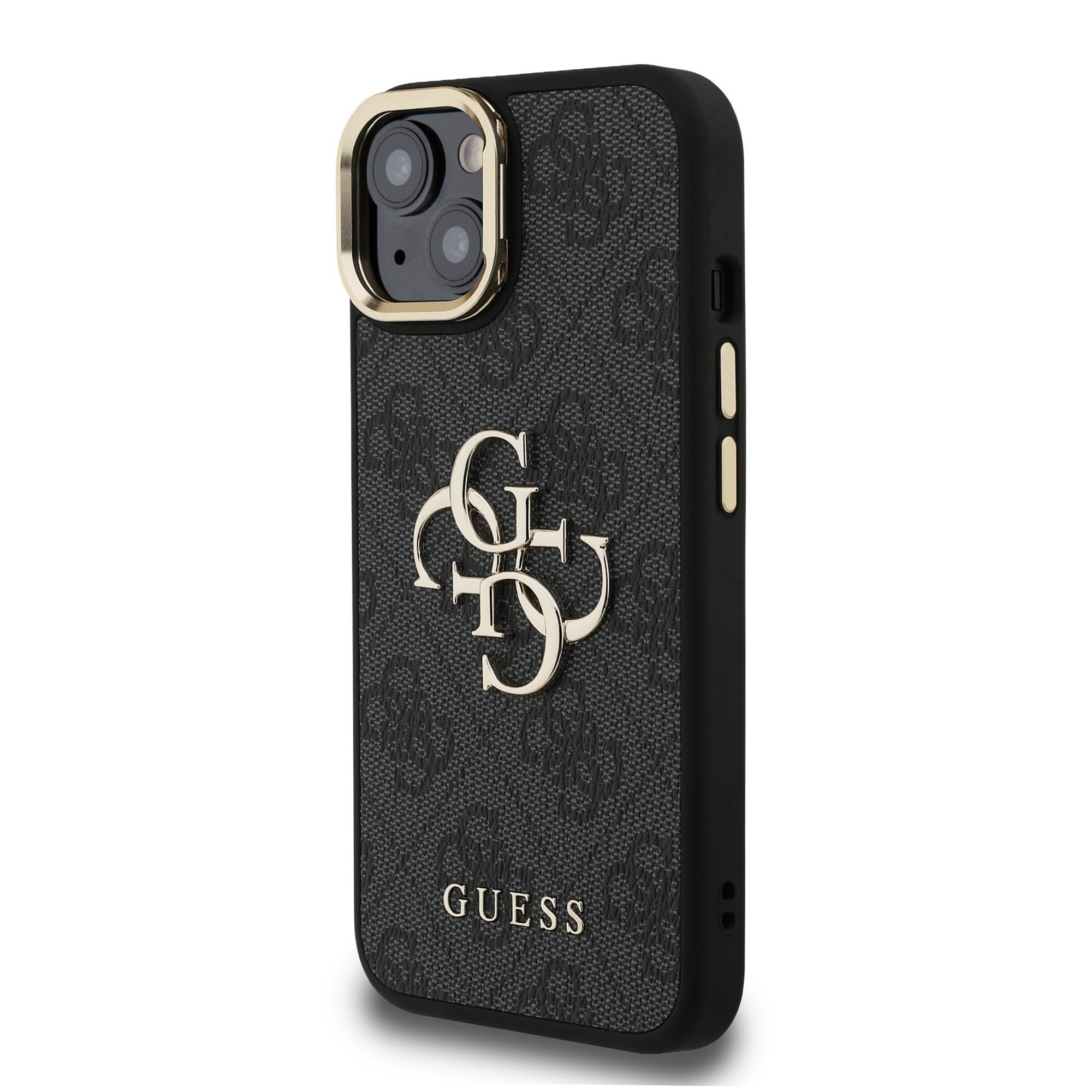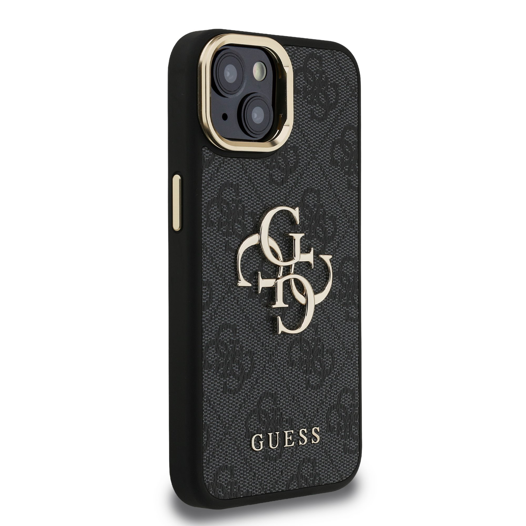 GUESS PU 4G Metallist Logo Alus Kaameraraam Kate iPhone'i 13 jaoks / Must (GUHCP13MPCS4GP4K)