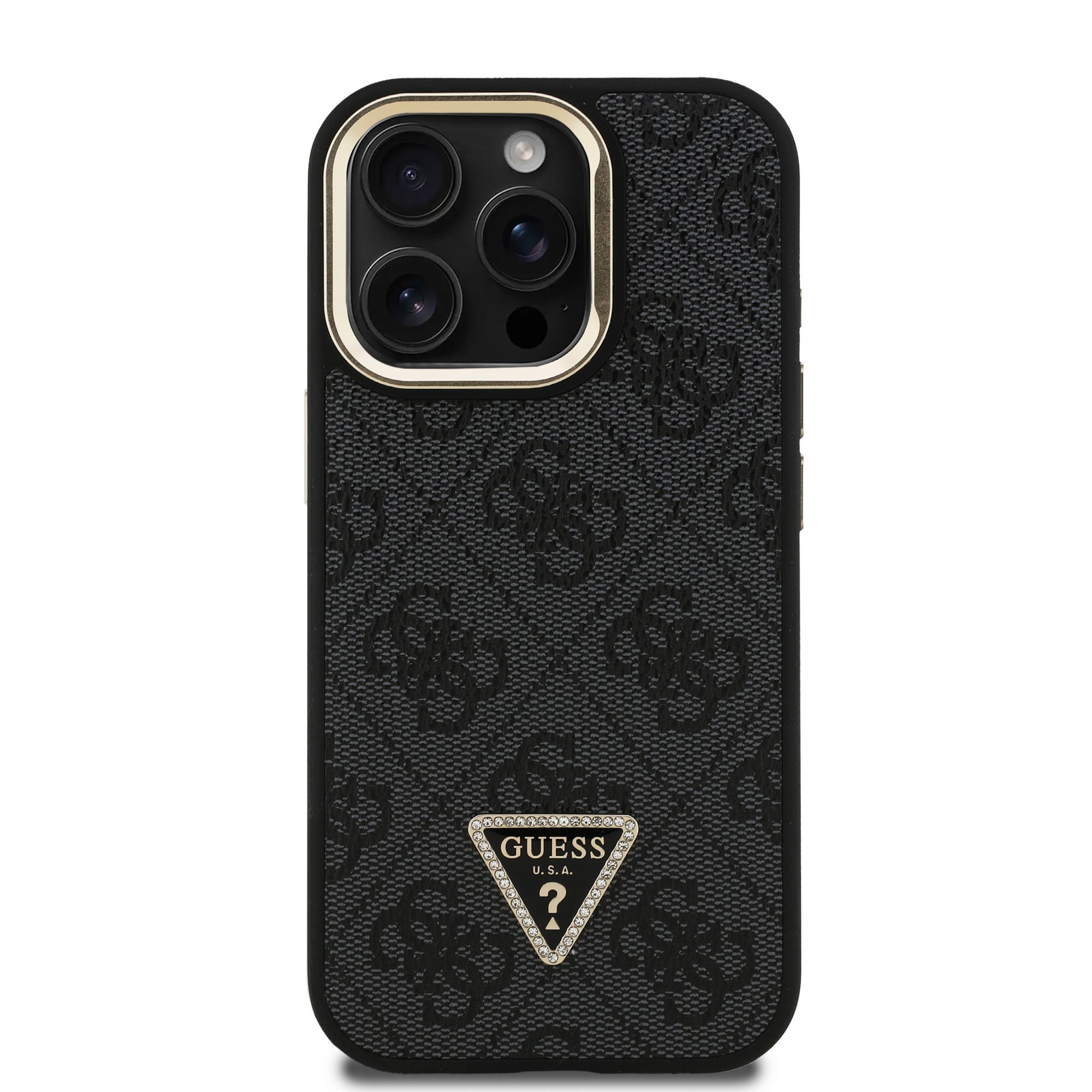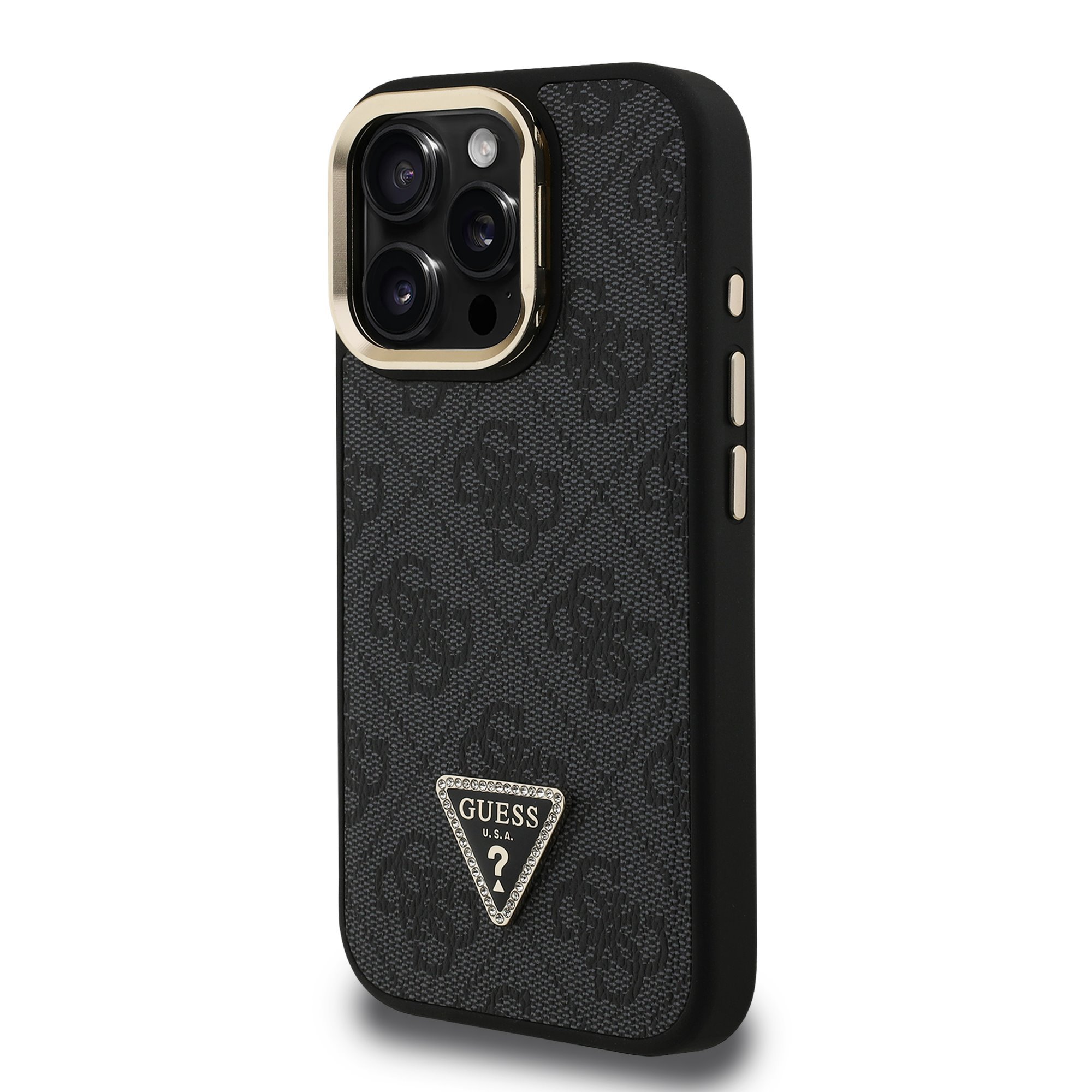 GUESS PU 4G Rhinestone Kolmnurk Logohoidja Kaameraraam MagSafe Kate iPhone'i 15 Pro Max jaoks / Must (GUHMP15XPCS4GPTK)
