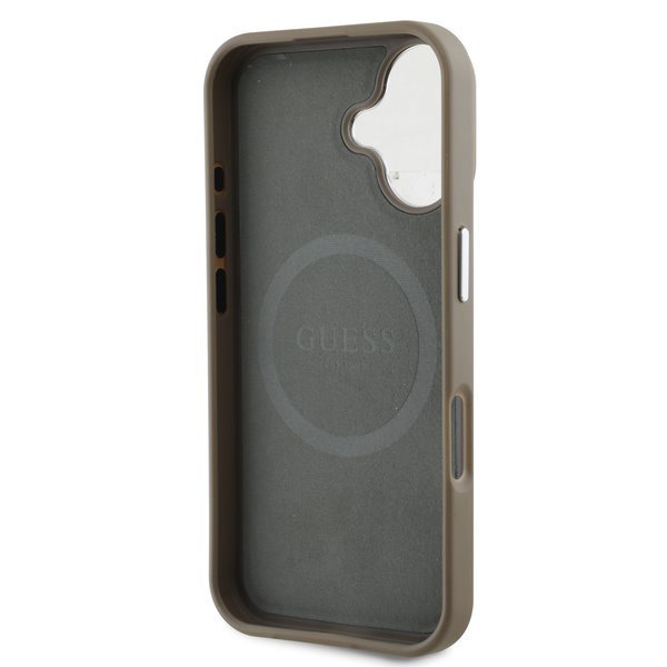 GUESS PU tekstuuriga kolmnurgaga logo MagSafe ümbris iPhone 16 jaoks / Pruun (GUHMP16SPGTSPSW)